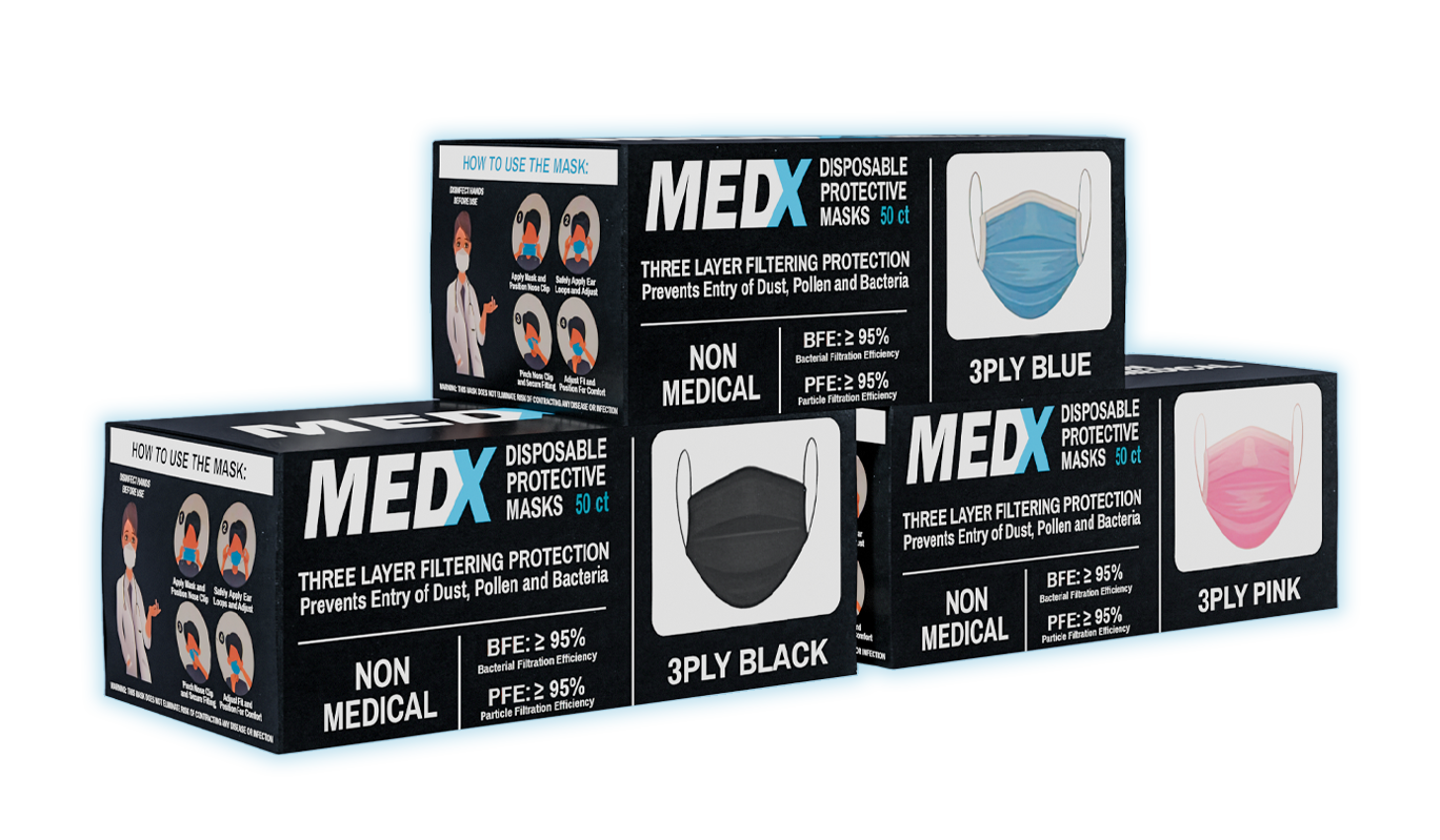 MedX 3PLY face masks are made with non-woven fabric that is soft,