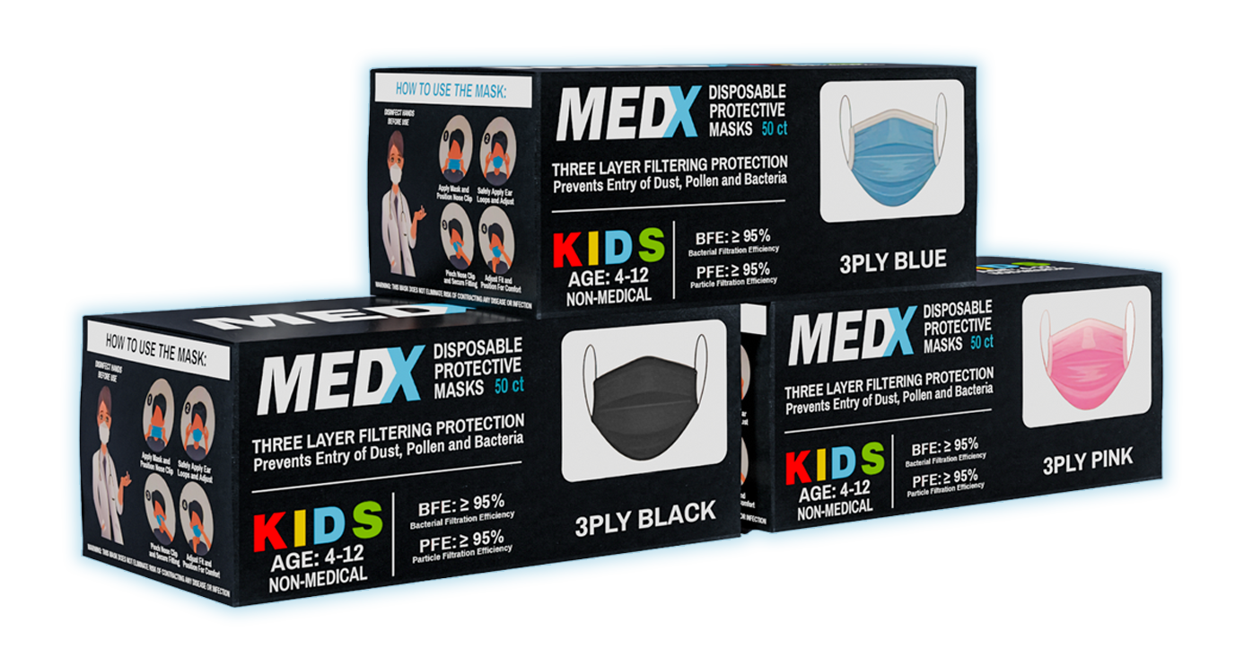 MedX Kids 3-Ply offers a safe alternative of protective face masks for kids with health care and personal protection in mind.